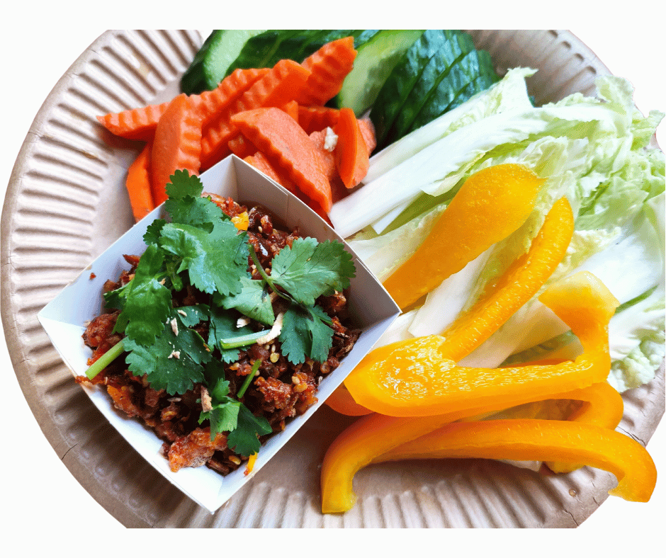 Nam Prik Kha: Sambal van geroosterde rode chilipepers met geroosterde laos, knoflook en diverse groenten