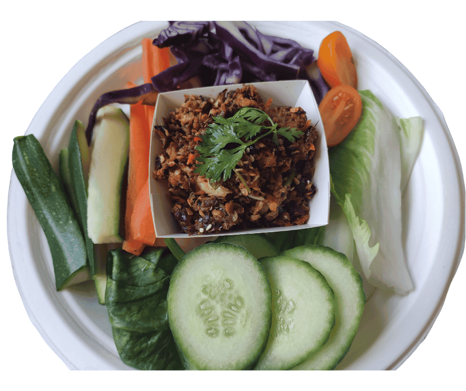 Nam Prik Pla Yang Sambal van gerookte makreel, rode chilipepers en diverse groenten. Dit smaakt heerlijk bij een pittig Thais visgerecht.